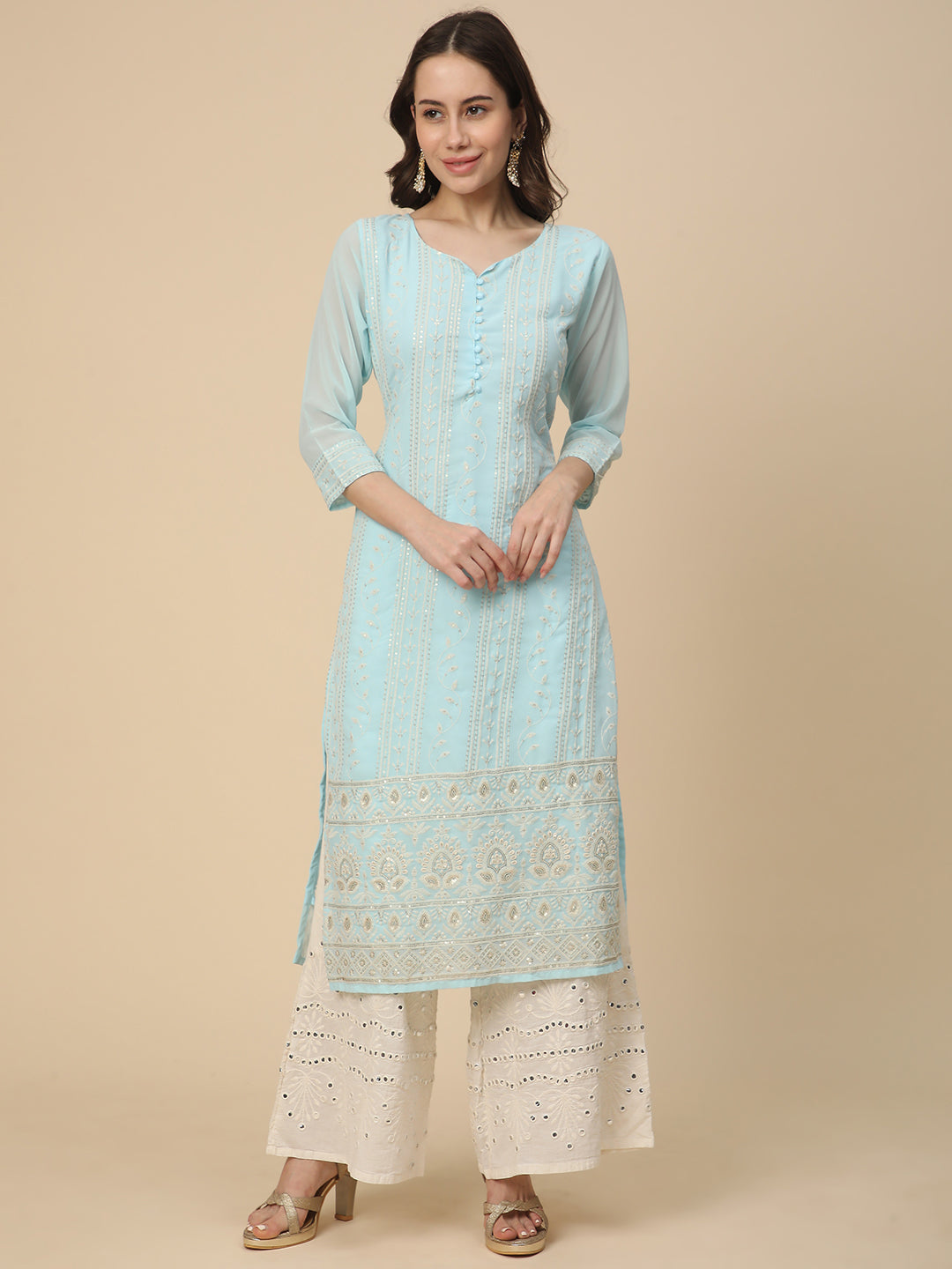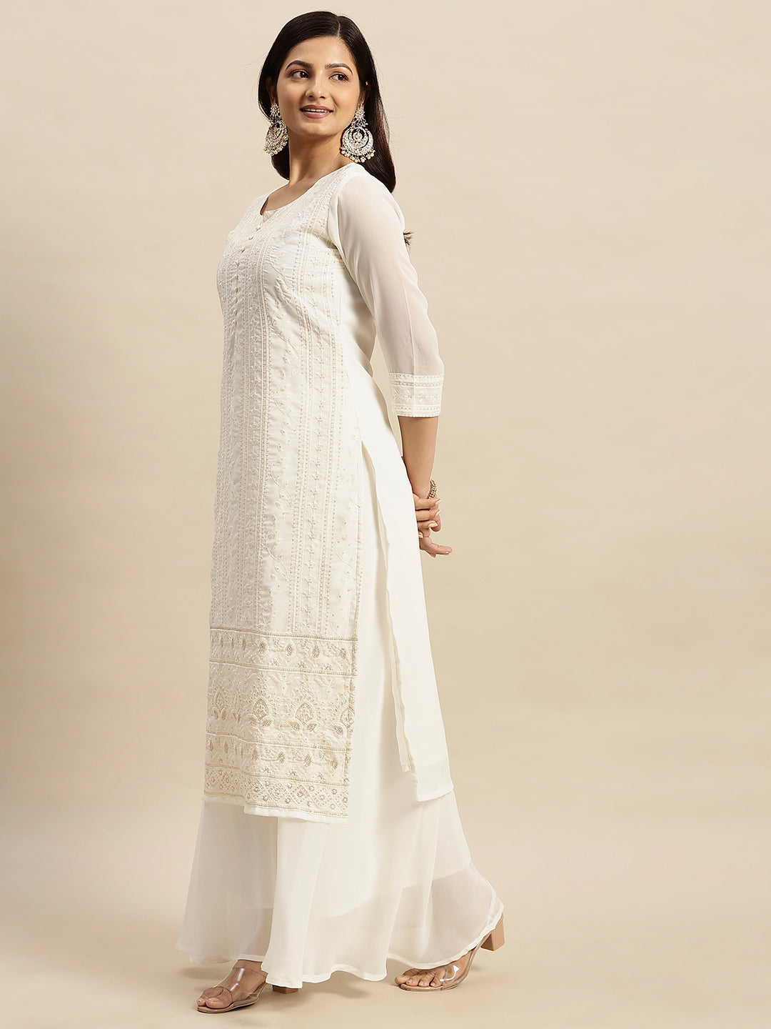 Georgette Straight Lucknowi Chikankari Ethinic Wear Kurta