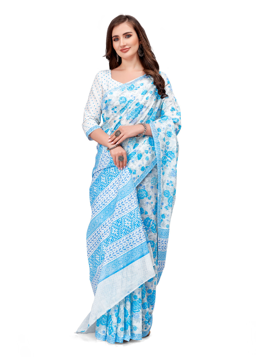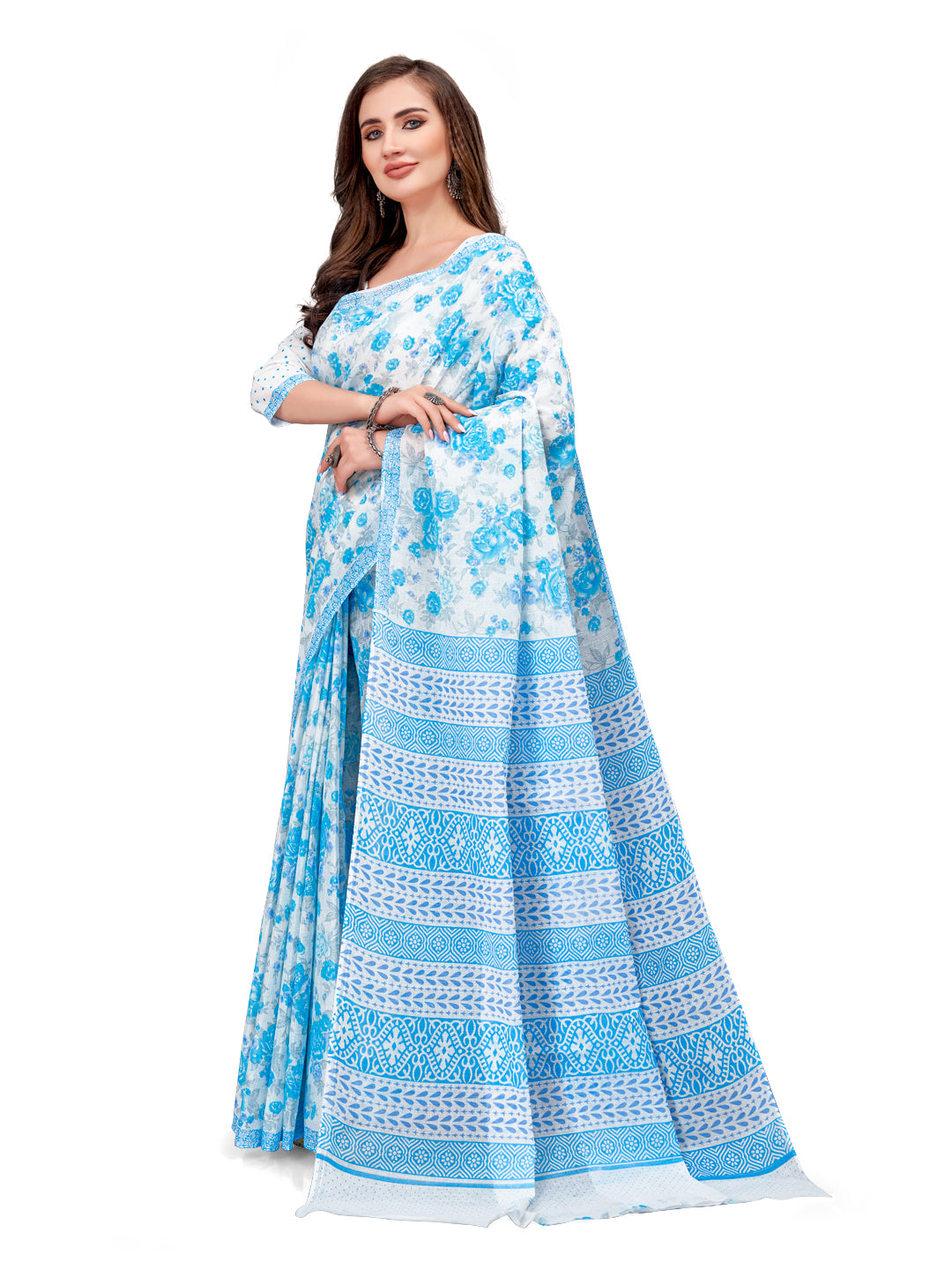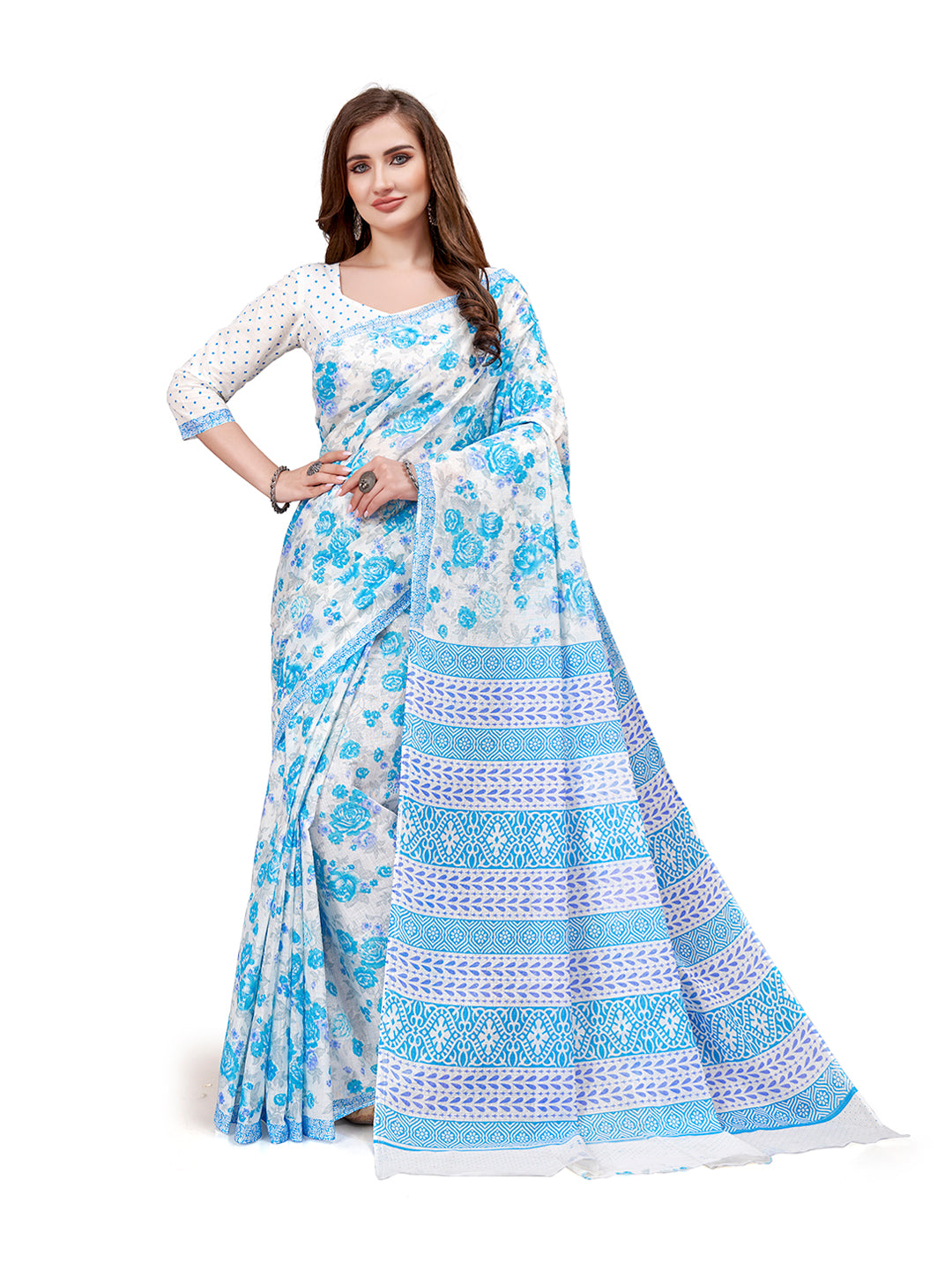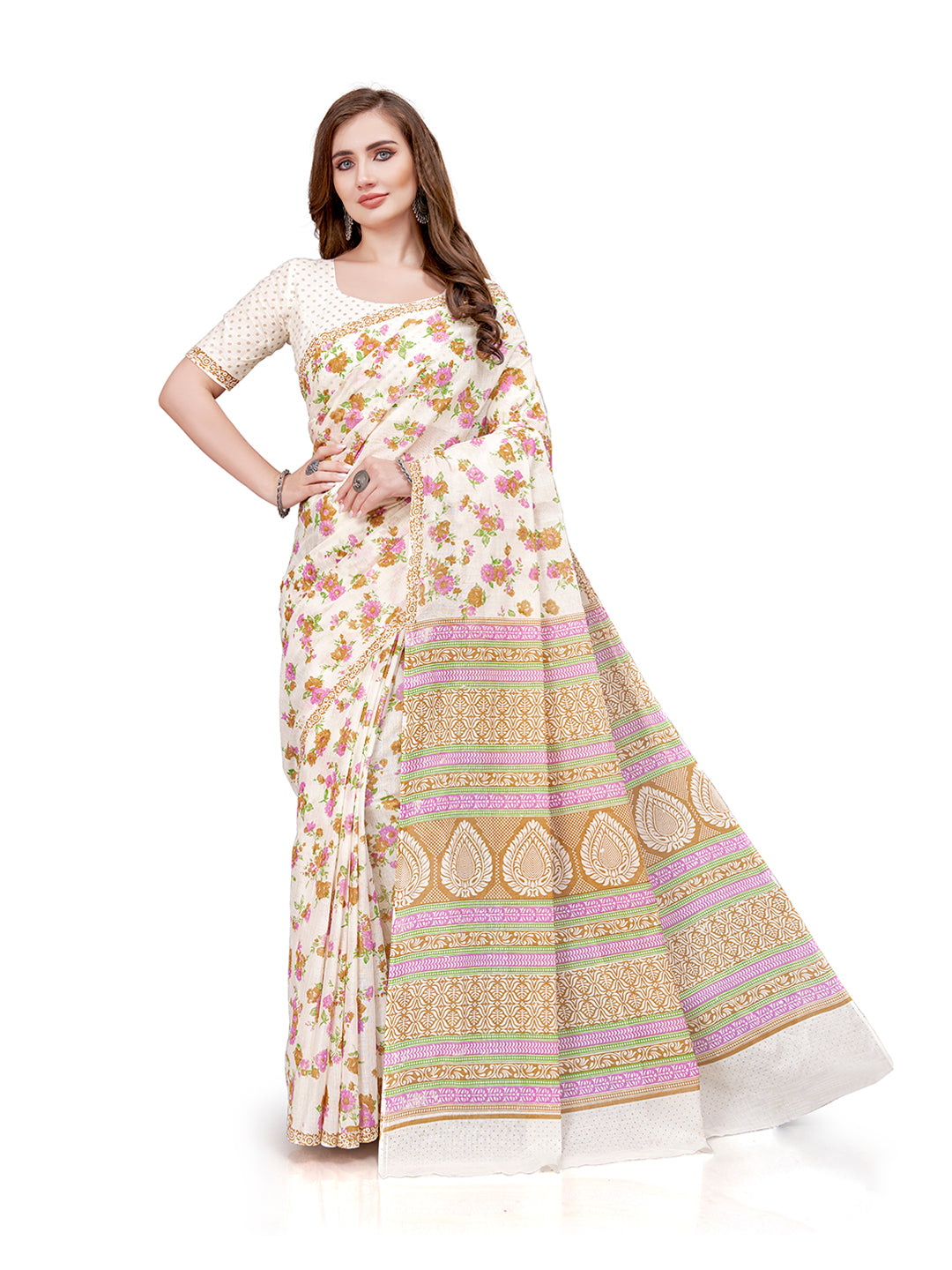 Made From 100% Soft Cotton Mulmul Fabric and Natural Colors(100%) Not Harmful for Body Skin. Saree Length :- 5.5 Meter approx with 0.8 mtr Printed Blouse Piece. 100% Cotton Saree. Gentle Mild Detergent Wash. Use of starch is recommended while wash