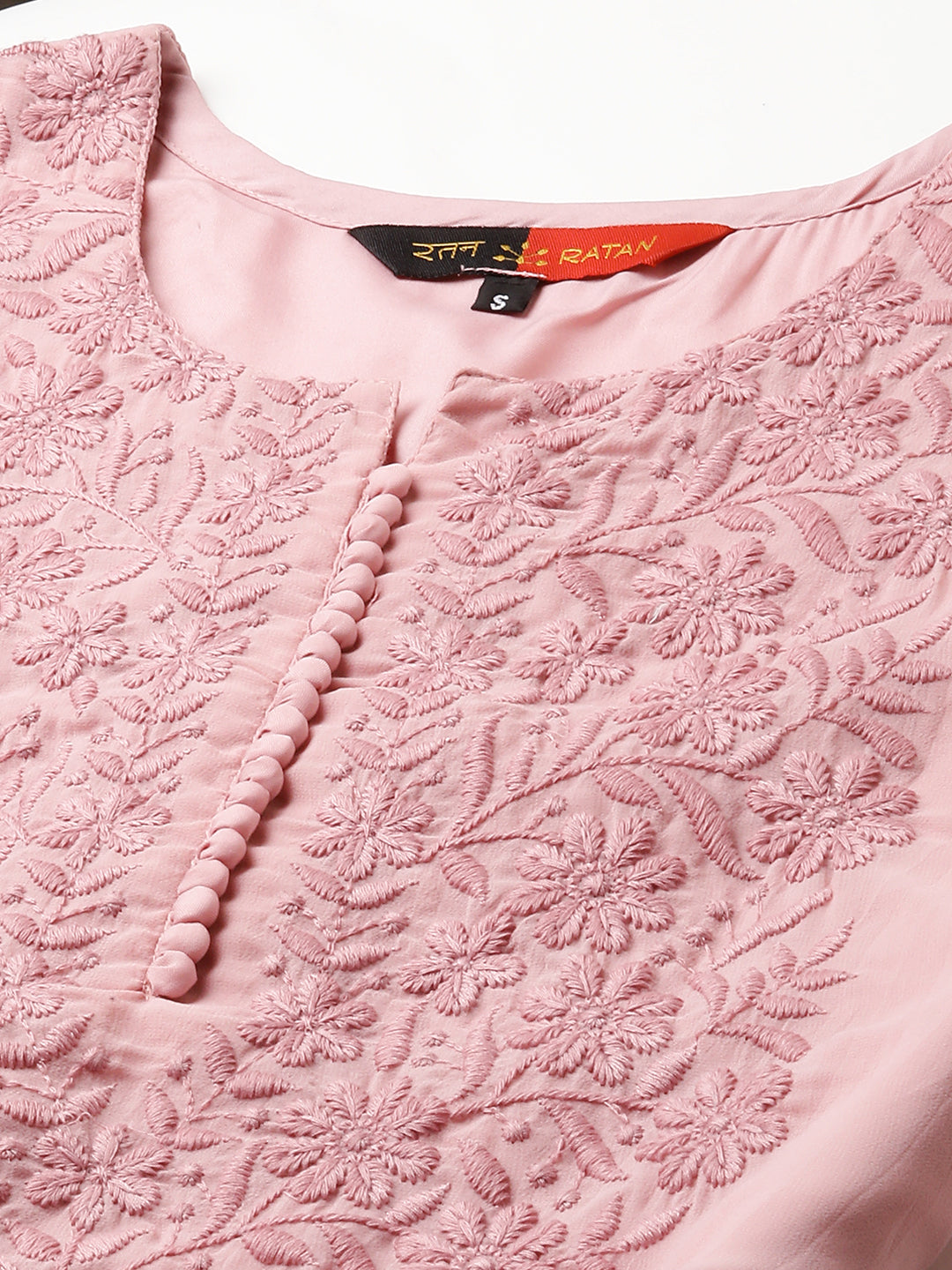 RATAN Women's Georgette Straight Lucknowi Chikankari Ethnic Wear Kurta