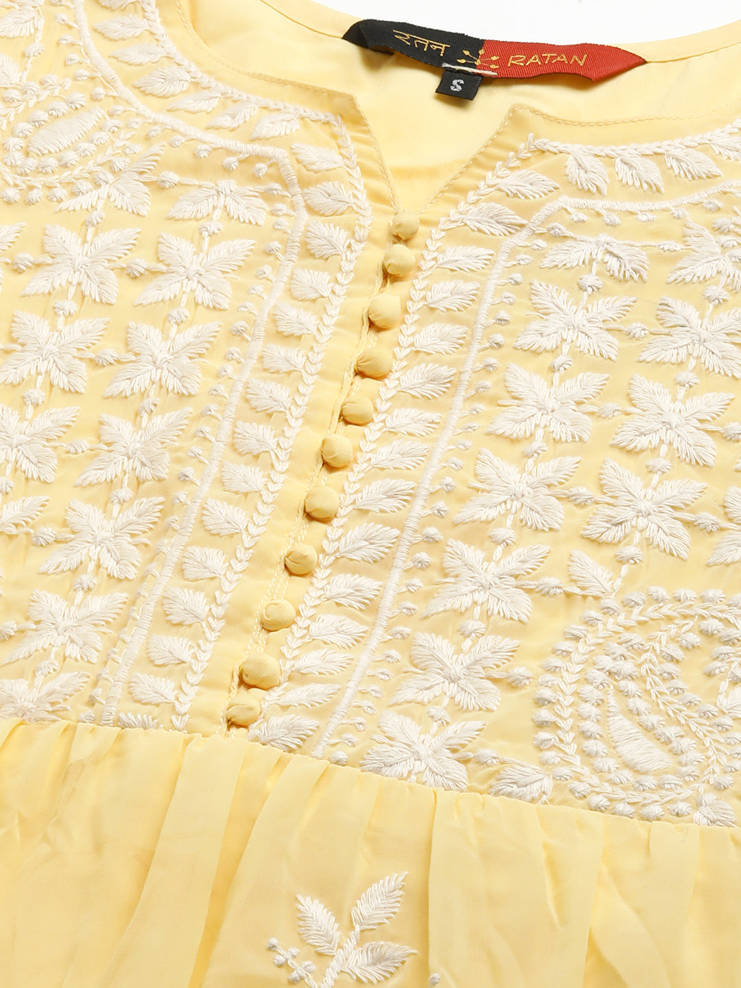 RATAN Women's Solid Georgette Tiered Chikankari Flared Kurti Gown Maxi Dress